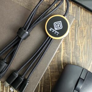 Charge smart and travel light with this 4-in-1 fast-charging lanyard cable. Features Type-C (main) with detachable USB & Lightning connectors, 60W power, and a durable nylon braided design. Includes ID hook, phone pad, and supports UV DTF branding.