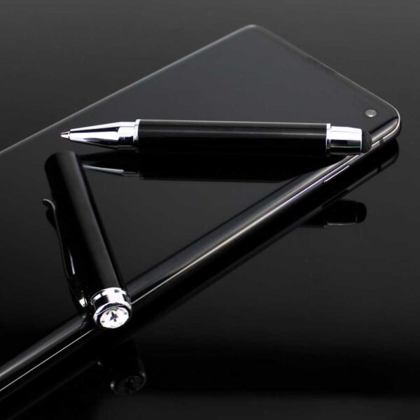 Amabel design stylus metal pen is a specially designed luxury pen. It is created with a metallic material. Thus, it is durable. This pen comprises a colorful metal barrel. Apart from the barrel, it also comprises a silver tip and chrome clip. It comprises a metallic fiber stylus. Thus, this stylus gives a smooth flow on your smartphones. So, it’s a perfect logo personalized pen with a stylus. The chrome clip at the end of the pen works like a holder. Thus, you can attach the pen to your shirt or bag. The SWAROVSKI element is attached to it. It provides a crystalline look. Thus, you can also use this personalized pen with a stylus for business promotion.