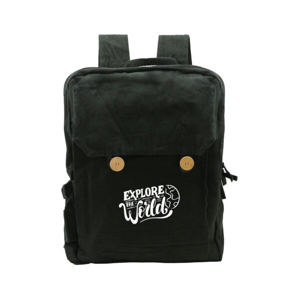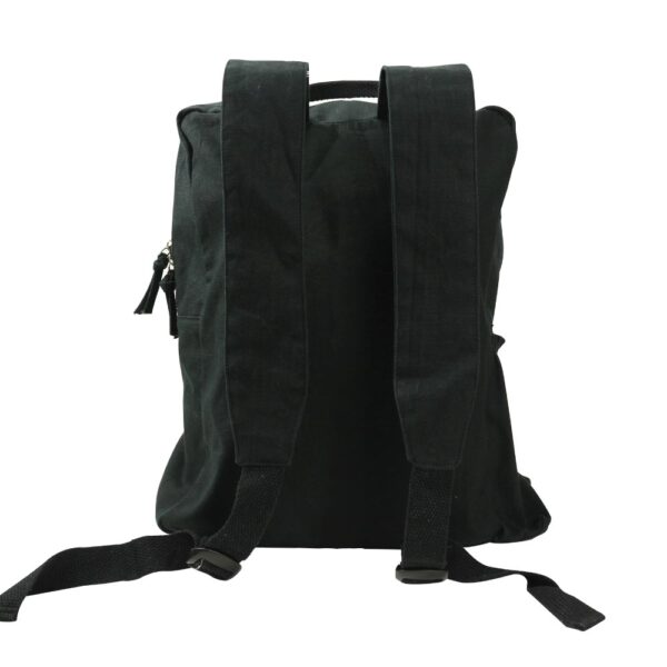 Black Cotton Backpack with Zipper Closure