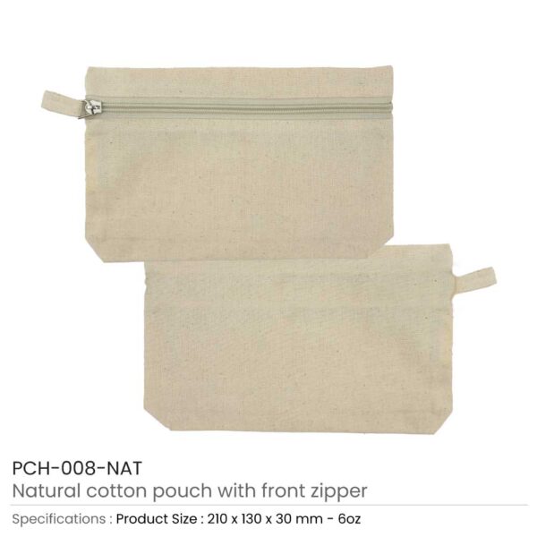 Natural Cotton Pouch with Front Zipper