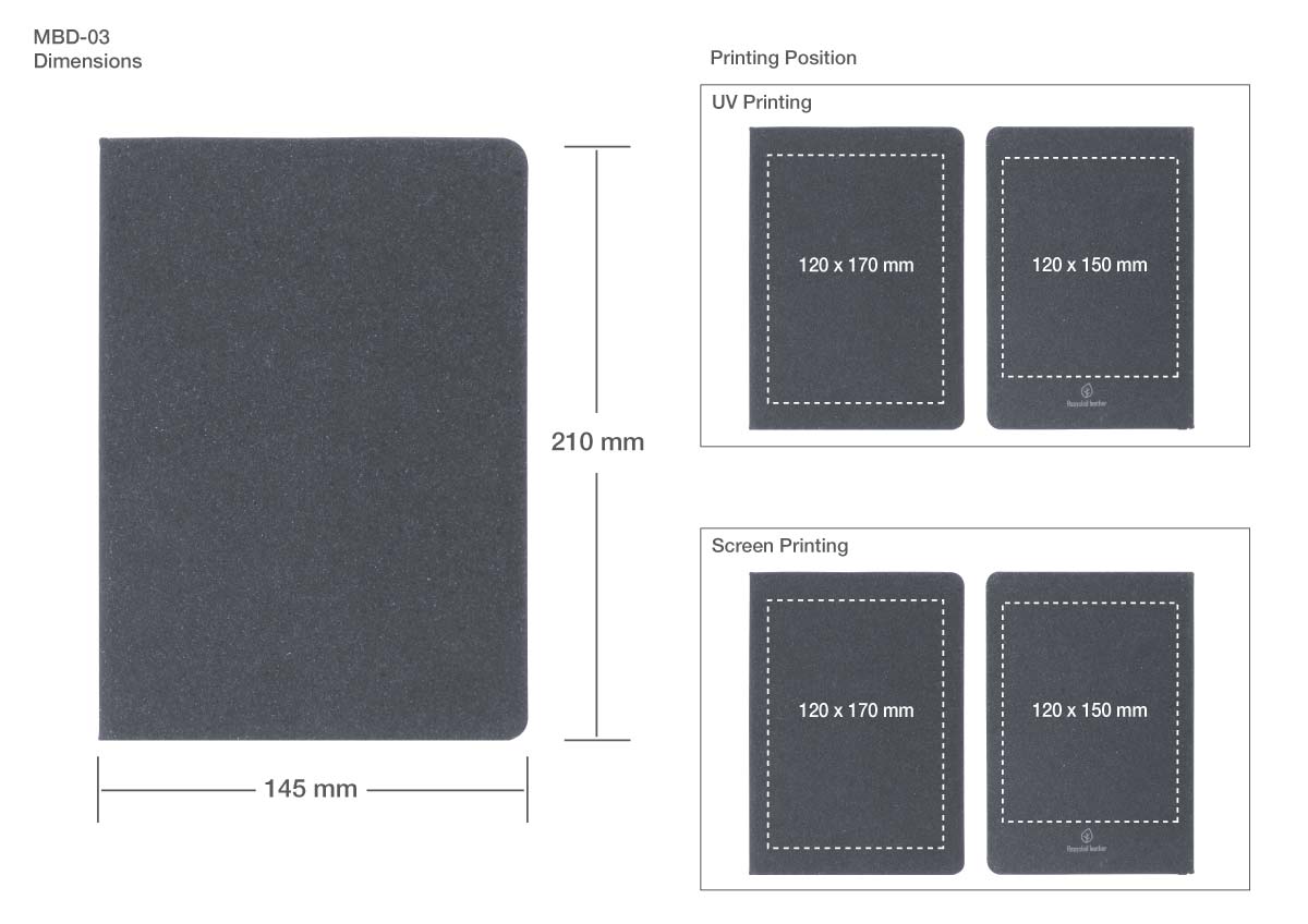 - Stone Grey color cover made of recycled leather+grey board(hardcover)