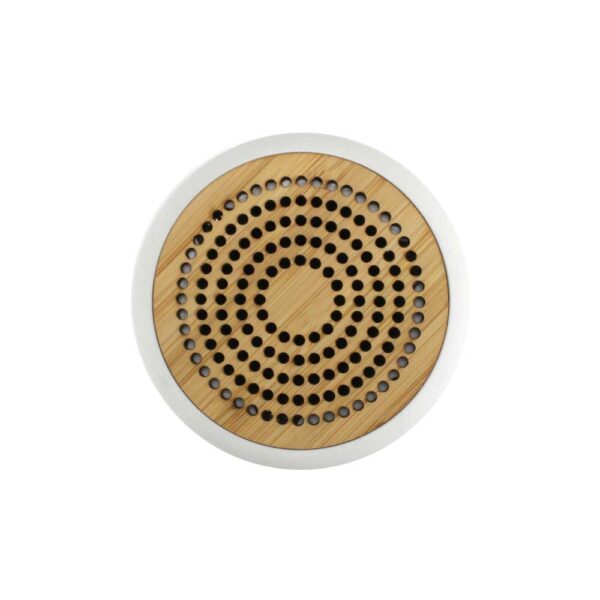 Eco-Friendly Recycled Plastic Bluetooth Speakers v5.1 with Natural Bamboo Finish, and Branding Options.