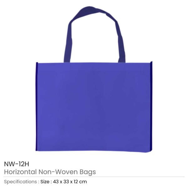 Horizontal non-woven bags are biodegradable two-color bags. These bags have a simple yet elegant structure. These bags had manufactured using non-woven material. It means they are neither woven nor knitted. However, they had made from flat porous biodegradable sheets. These sheets had made of staple and long fibers. Thus, these SAWG bags are more durable than other bags. It comprises a horizontal white color surface with a colorful outline. However, the handle is colorful. They have more strength than other bags. Thus, they can carry more weight. Also, these branded bags are easily washable.
