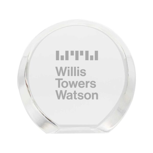 The small inclined round crystal is a classic and stylish award piece. The slant is hand-cut from flawless crystal. This simple piece can turn into a custom promotional gift item after using laser technology. Laser engraving is a printing technique that we use to personalize gift items. You can print your brand logo or any text on this small crystal and use it for decorative purposes.