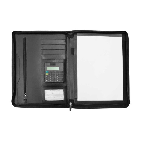 Leather Portfolio with Zipper and Calculator