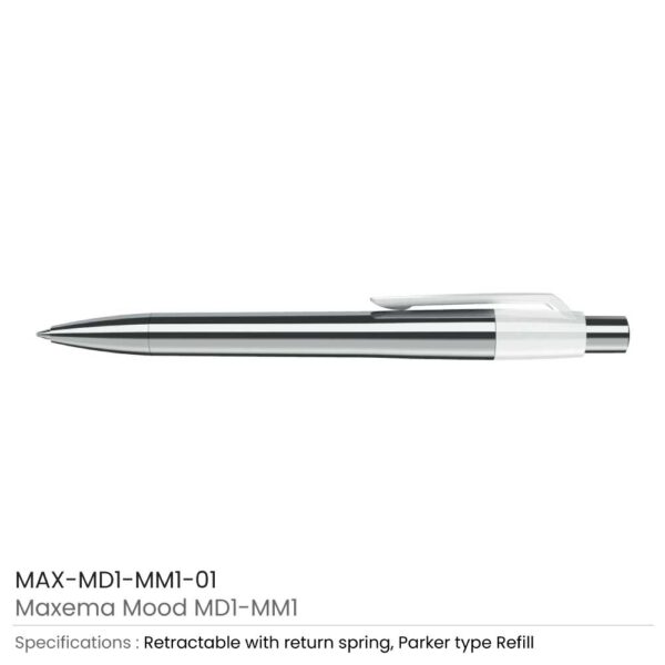 Maxema Mood promo metal pens are cool business pens. They are crafted with a reliable metal material. Thus, they are durable and safe for use. Its barrel is specially crafted with silver finish metal. Thus, it has a glossy diamond mirror face finish on the whole barrel. The barrel and tip are in the same silver color. The pen also has a push button which is silver plated. Thus, it gives the pen a luxurious look. Thus, you can customize these pens as corporate gifts for your company.