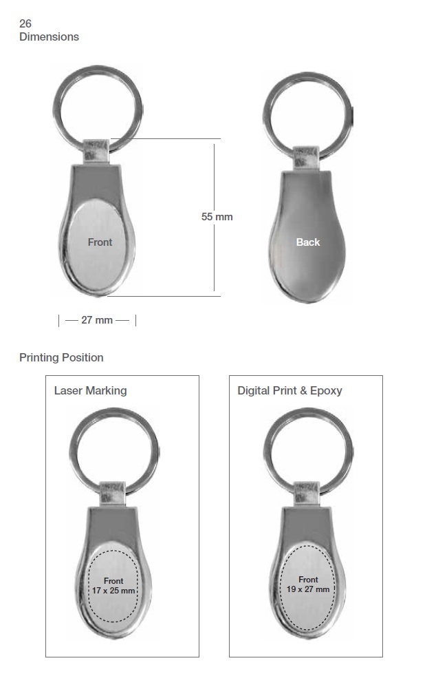 - Oval Keychain with a Shiny chrome finish.