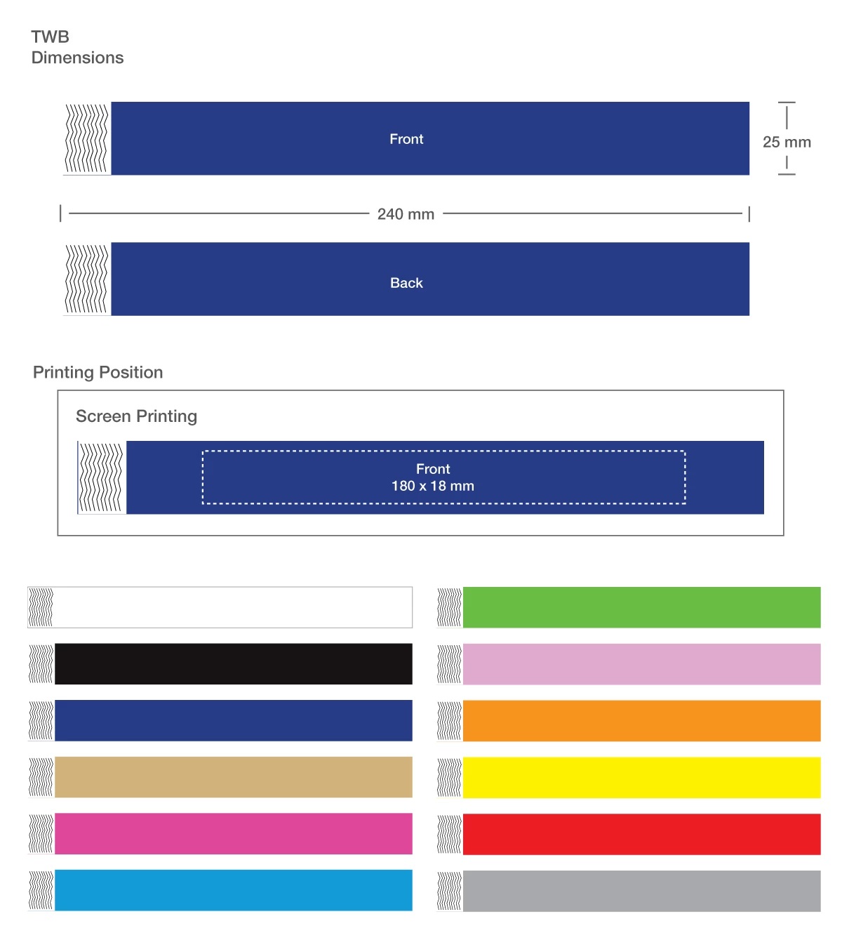 • Wristband size: 240 x 25 mm.